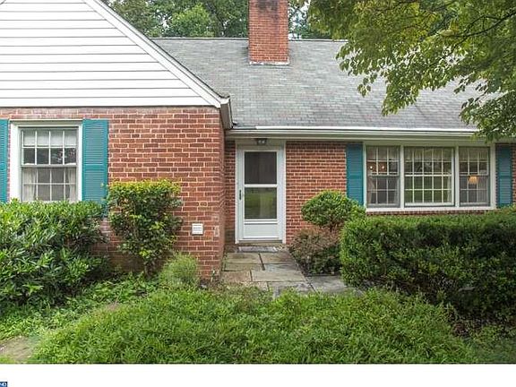 Charming maintenance free 3 bedroom, possible to restore sitting room to 4th bedroom with modifications and relocate washer & dryer back to basement, brick cape, 2 baths with 18' wide oversized garage and basement on spacious tree lined street. Welcomed with flagstone walkway to front deck. Enter vestibule onto a bright living room with triple windows, fireplace with built ins and neutral colors. Large opening to dining room with double windows, perfect for entertaining. Chair rail in dining room. Handsome newer kitchen with maple cabinets, Corian, stainless steel appliances, cook top, wall oven and convection oven. Hardwood floors, casement window over sink and finished off with crown molding and pantry. Spacious master bedroom with double closets, cozy den both on first floor. First floor laundry. Second floor includes 2 additional bedrooms with full bath. Easy access to attic from bedroom. Central air. Lovingly maintained house, perfect for up-sizing or downsizing. Basement has laundry tub. Enjoy serene and scenic backyard, bordered by a wall of trees with variety of landscape that attracts butterflies. Abington School District, close to train station. Convenient yet private location with easy access to major cities, trains, and roads. Welcome Home!