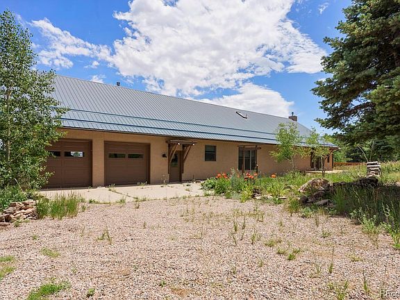 Mountain Paradise - Experience the pinnacle of living in this stunning 2484 sqft home nestled in a desirable development with private access to the National Forest & the Rainbow Trail. Conveniently located close to town, this property offers seclusion & accessibility. Charming stucco exteriors, metal roofing, and a Trex-type deck frame the periphery of this one-level home. At the same time, the interior exudes a sense of openness, with soaring vaulted ceilings, skylights, and wide hallways. The airy living, dining, and kitchen space is well-equipped, and the bedrooms are light-filled & generously sized. Enjoy the recent remodeling, highlighted by unique lighting, sliding barn doors, and a fresh kitchen boasting a downdraft cooktop and stunning granite countertops. The great room is a true sanctuary with a magnificent stone gas fireplace and panoramic views of the surrounding forest, open meadows, and distant Wet Mountains. Hobbyists will love the heated, attached garage providing ample storage and the possibility of a separate workshop. Embrace the changing seasons in style, with French doors leading to a beautiful back garden area, offering tranquility & picturesque scenery.