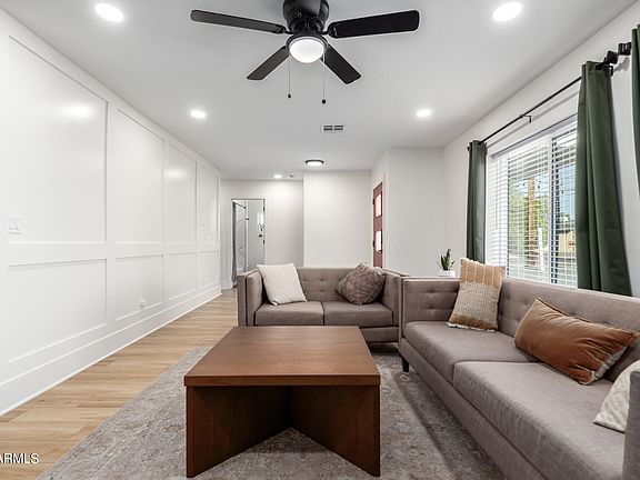 Explore this main home with 3 bedrooms and 2 bathrooms, complemented by a separate 1 bedroom, 1 bathroom casita in Phoenix's Coronado Historic District. The main residence boasts engineered hardwood floors and a modern kitchen equipped with contemporary finishes. Nearby, the casita offers a private space for guests or serves as a quiet home office. The outdoor area is ready for relaxation and entertainment with a private jacuzzi and a cozy fire pit area, surrounded by durable artificial grass. This property blends functionality and comfort in a historic neighborhood, ideal for those seeking a home with traditional charm and modern conveniences.