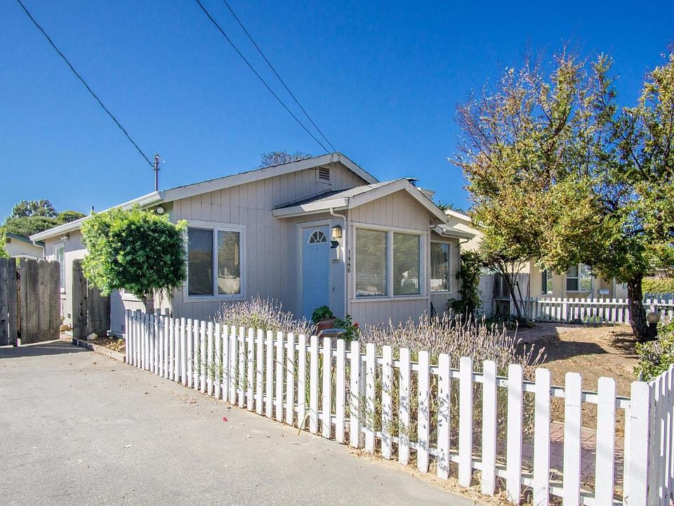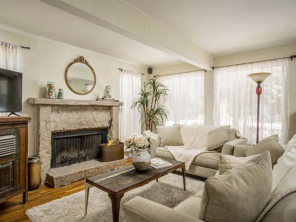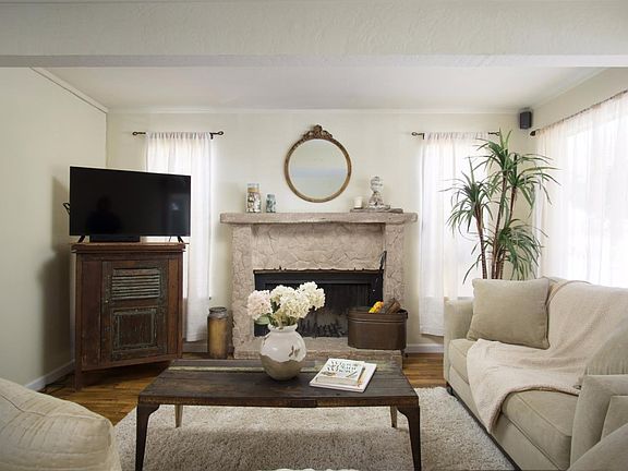 Situated on a large lot is this cute two bedroom, one bathroom bungalow with a white picket fence and a functional open concept floor plan. Features include new wide plank floors, updated bathroom with skylight, formal entry, huge laundry room, and a beautiful stone fireplace in the living room. The yard is fully fence with lemon, apple, and grapefruit trees, and tons of space for outdoor entertaining. Plenty of room for parking an R.V. or boat and you even get an outdoor room for storage. Come over and enjoy the comforts of this home!