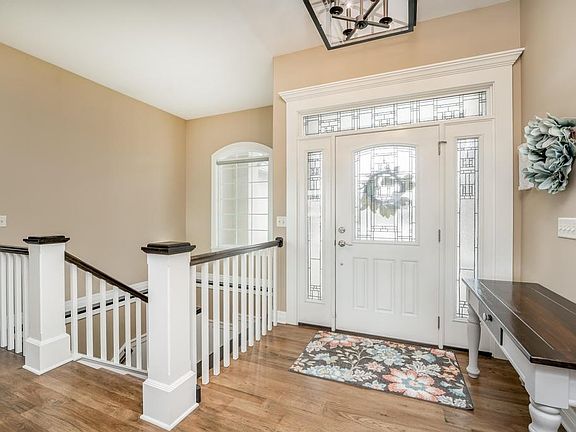Welcome home! This move-in ready, Walter Reid custom-built home is located on a gorgeous golf course lot with views of two fairways and greens. Views like this are hard to find. You will love watching the sunrises and sunsets from the stone floored, covered and screened deck. You have views of the natural prairie grasses that provide the perfect buffer from the fairway. As you drive up to the home, you will notice the home is on a cul-de-sac lot, has high end landscaping, a large front porch, and a beautiful front door with high end glass surround. The entry welcomes you and you will notice the site-finished hardwood floors that span most of the 2200 sq ft of the main floor. The main level was designed to have a large open floor plan with vaulted ceilings, an open kitchen, a large dining area, and a lot of great space for entertaining, including ceiling surround sound speakers. All centered around having panoramic views of the backyard. There are two bedroom suites on the main floor, each having their own bathroom and walk-in closet. The master bedroom overlooks the backyard oasis, features a high-end master bathroom with walk-in shower with dual shower heads, two sinks, nice cabinetry, and a walk-in closet that connects to the laundry room. You will love this dream kitchen that features a Bosch gas range with pop up venting system, double stainless ovens, a butler’s pantry that spans the entire back of the kitchen, granite countertops, and a very large island. Also, the main floor offers a half bathroom, mud bench area, and a separate laundry room with added cabinetry and counter tops. Head downstairs and you will immediately be drawn to the heated, stained concrete floors. Perfect for easy care and your enjoyment year round. The large rec room offers a walk-up wet bar with bar fridge, a separate game area, and lots of light from the large windows and double walk out doors. The living area offers plenty of room for furniture and includes built in surround sound. There is a great workout room or separate office space, two more bedrooms, and two full bathrooms on separate ends of the basement as well. All the bathrooms have high end cabinetry, nice countertops, and tile flooring. Each bathroom is truly custom. You will find the mechanical room with storage and a second storage area with a concrete safe room as well. For even more outdoor enjoyment, the homeowners have added a gorgeous patio with fireplace and sitting walls, screened in the deck, added a putting green, and fenced in the back yard. The walkout area is perfect for a hot tub/spa and the wiring is already in place. The playhouse even stays for the next homeowners. The three garage is finished, offers loft shelving, and even a wash sink with heater. Plenty of room to park your golf cart. Cat 6 wiring throughout. Just minutes away from shopping, restaurants, and schools. Stone Creek Elementary has an excellent brand new building as well. This is one of a kind built home. So many details and upgrades throughout. You must see to believe! Don’t forget to check out the virtual home tour too.