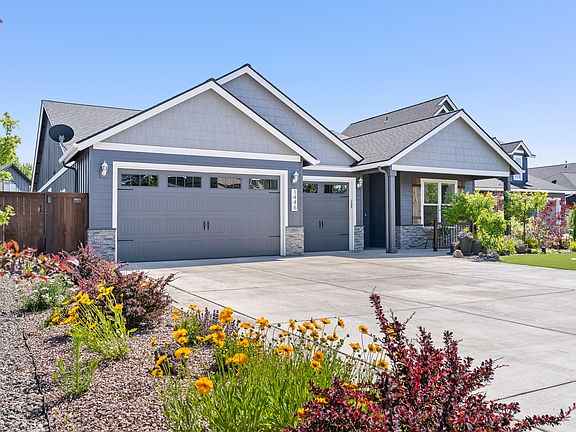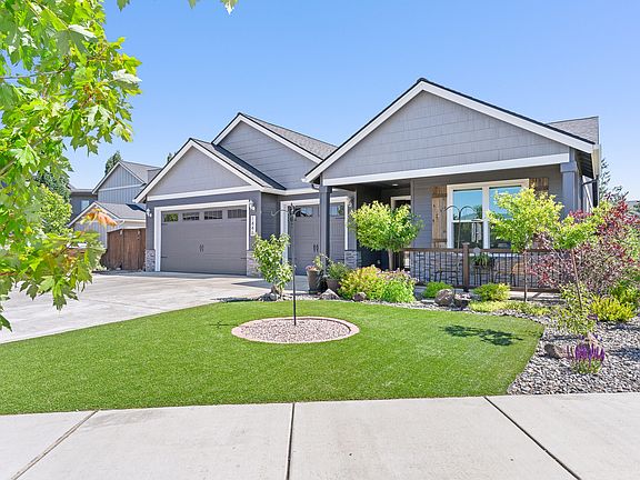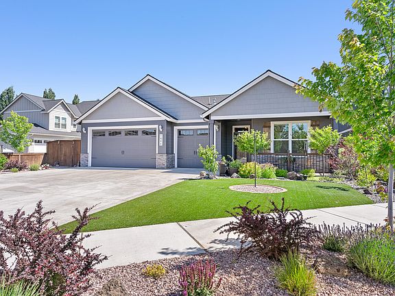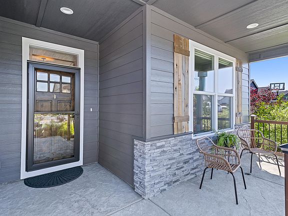 large tile shower and walk-in closet. The three car garage offers space for storage or a workshop, the beautiful xeriscaped front and back yards feature artificial turf, rock, robust fruit trees and shrubs (only 7 mins 3x a week to water). The large covered back trex deck overlooks a private yard featuring a garden/office shed, turf, and planting beds. Great accessibility features within the home as well with lever door handles, one step entry, and high toilets.
