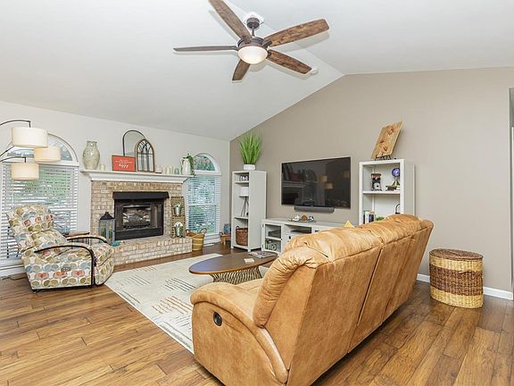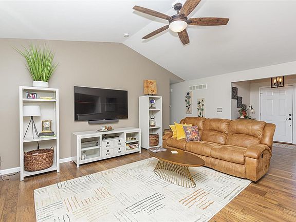 New Roof '22, New Windows '23, UPDATED Kitchen & Bathrooms. Main Level Floor Plan provides: Vaulted Ceiling Great Room (gas fireplace), Spacious, Updated Kitchen - Breakfast Room Combo with ample custom cabinet space, granite counters, tiled backsplash, stainless steel appliances and more. Main Floor Laundry, Primary Bedroom Suite with Full Primary Bath, 2 Additional Bedrooms and another Full Bath (tub & shower combo)! Finished Lower-Level boasting a Large Family Room with Built-in Bar Area, 3rd Full Bath, and plenty of storage space. 2 Car Garage. Covered Front Porch. Covered Back Patio with park-like stone landscaped backyard with small Waterfall. Well Maintained & Updated Home!
