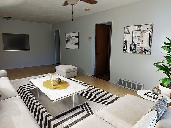 Location and larger than it appears! Entering the 25'x12' living room with hardwood floors and large windows, you'll see the opportunity here. Kitchen with lots of cabinets, all appliances and dining area. Hardwood floors throughout living room and bedrooms. Kitchen and bath with vinyl. Lower level has tons of potential for family room, media room, workshop, roughed in for another full bath and an egress window plus storage. Fully fenced backyard and large patio plus garden, with established asparagus patch, apple trees and blueberry bushes. Water heater new 2017. Central air new 2012. 2 car attached garage is 22' x 22'.