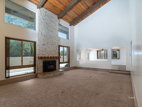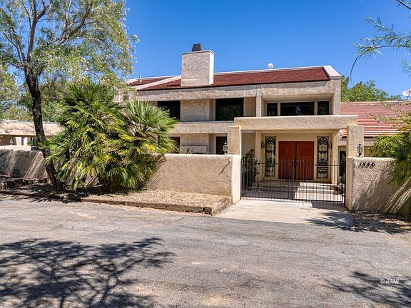 A spectacular Southwestern style mansion with resort-like grounds spread over nearly 4 acres in NW R/C. Prime location within easy proximity to town. This exquisite, self-contained home is a luxurious find! The entryway dazzles with beautiful stained-glass windows framing stately double doors and a grand view at the entry. A staircase leads to 3 spacious bedrooms - one is a master bedroom w/ its own full bath & two guest bedrooms with a shared Jack & Jill bath. All rooms are connected via back patio access that provides a view & staircase access to the idyllic backyard. The main floor has a large master suite, w/ big walk-in closet & bathroom spaces, new granite kitchen countertops, a bonus room w/ half bath & 2 large downstairs living spaces - each with a fireplace. Built-in wood cabinetry throughout the home & a standalone 3-car garage. Owned ample solar panels with 4 newer HVAC units will keep everyone cool. The house is stocked w/ all high-end equipment & amenities - more than can be listed . The back space is resort-like with outdoor barbecue, in-ground swimming pool, tennis court and basketball court. This home is unparalleled and epitomizes quality & luxury!!