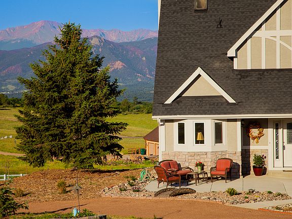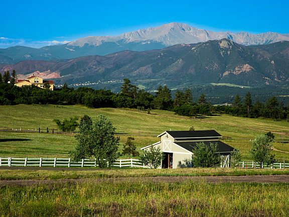 Country living next to the City. 5 acres for 3+horses, barn w 3 stalls w water & elec, 2 corrals, lg meadow fully fenced. Amazing 360 views of mtns and woods from huge decks and fire pit patio. Btfl complete home remodel. 2X6 construct. Close to schls, Fox Run Pk, Tennis courts, 2 golf courses. 2 furnaces, 2 AC's, media rm, Cust window treatmnts, Gourmet kitchen, appliances: Electrolux Micro/conventl/convect oven & Jenn-air 5 gas burner range. Oak flrs, granite counters, solid 6 panel doors, Front Patio and Circle Drive.,This property is a must see to appreciate the finishes that make it look new. Worth coming to take a look. The views are breathtaking. Home has new 50 gal water heater, new large well tank & water filter. Media rm is wired for surround sound and home has coaxial cable installed for all media use, even new switches and outlets. All light fixtures are new. Kitchen pantry is in the adjacent laundry room to kitchen. Enjoy 2 natural stone fireplaces, one with a gas heatalor and the other wood burning to warm up to on chilly nights. Master bedroom has study niche, his and hers closets and walkout to private deck with great views. The master bath has large jetted tub and a ceramic tiled floor that looks like wood. The front of the house has large patio and professionally landscaped areas to relax in as well as to view the Black Forest woods on that side of the house which is almost as beautiful as the backyard view of Pikes Peak, the front range and the Air Force Academy across a lovely country valley. Just picture yourself in this Country Spectacular Setting in the highly sought after valley of Sun Hills and calling it Home.