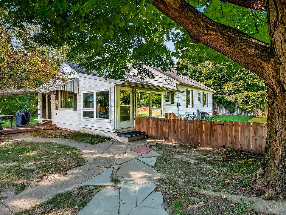 Charming 2-bedroom, 2-bath home offering comfort and convenience in a peaceful setting just minutes from the highway. Features include hardwood floors, an updated kitchen with new pantry, spacious living room with fireplace / pellet stove, plus a second living area currently used as a bar/office. Enjoy the mudroom, four-season room, full basement, and fenced backyard. Mechanical updates include a high-efficiency furnace and water softener. Detached 3-stall garage offers ample storage and parking. In addition there is unfinished attic space ready for your personal touch.