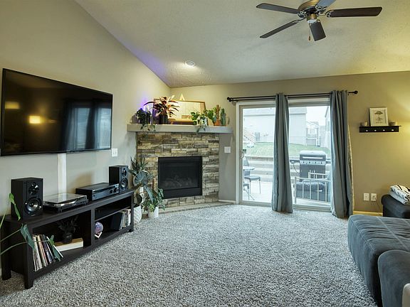 Santee model home that features extra living space and a 31 foot deep garage! Living room has corner fireplace with stone front, gas starter, vaulted ceiling, ceiling fan and sliding glass doors to deck. Living room is open to kitchen with partial wall in between making it perfect for entertaining small or large gatherings. Kitchen has luxury vinyl plank floor, vaulted ceiling, stainless steel appliances, quartz countertops and large dining area. Bathrooms have quartz counter tops. 14.8 x 12 primary bedroom has recessed ceiling, ceiling fan and walk in closet. Popular Bennington Schools. Nice size rooms thru out. AMA