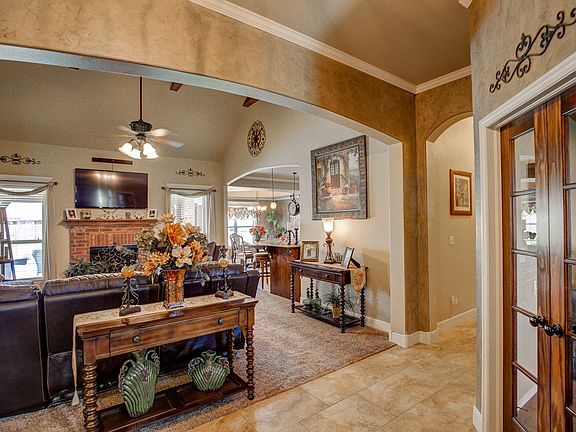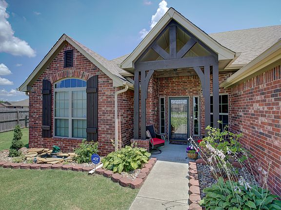 Gorgeous one owner, single story home located on a cul-de-sac. Full brick, 3 car garage, storm shelter and more! This home sits on a large lot that is fully fenced. It offers granite counter tops, stainless appliances, split bedroom plan, new carpet, fresh paint and gorgeous master bathroom with large shower that is pre plumbed to add a tub if desired. In addition to all that, you'll love the in-ground saltwater pool, stamped concrete patio and walkways, the pool house & amazing outdoor pergola area.
