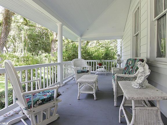 This turn of the century gem, boasting 6 bedrooms and 5 bathrooms, is nestled on in the heart of historic Magnolia Springs’ majestic oak canopy. Built as part of the Governor’s Club Resort, it was later known as The Magnolia Inn and was a popular honeymoon destination. The generous front porch, large back screen porch, brick patio and bedecked grand oak overarching the back court yard welcomes family and friends with ample space to entertain al fresco amidst beautiful surroundings. Stepping through the double front doors into the sitting room you are instantly aware of the history before you. Tongue-and-groove beaded board walls and ceiling are original to this one of a kind former inn, as are the gorgeous chandeliers, twelve foot ceilings and large mantel over a log-burning fireplace. The dining hall, is the true heart of the home, with lovely sconces lining the walls that lead to French doors and the verandah. Also on the first floor is a large library with a wall of floor-to-ceiling built-in bookshelves, three bedrooms with renovated en suite bathrooms featuring showers in two and a claw foot tub in the other. The spacious kitchen features a host of custom cabinets designed by the homeowner to match the heart pine floors found throughout the downstairs. There is a sunny laundry room adjacent to the kitchen. This home’s large rooms and 12 foot ceilings represent the characteristic grandeur of a bygone era. Three large bedrooms upstairs, along with two bathrooms containing cast iron tubs and pedestal sinks round out the sleeping accommodations. There is also a large family room and sitting room/landing for family or guests to relax in. Closet space and storage abound throughout. The property extends 300 feet, fronting Oak Street to the north and Island Avenue to the south. This beautiful one-of-a-kind property would make a wonderful family residence or possibly a B and B on Magnolia Springs' historic Oak Street.