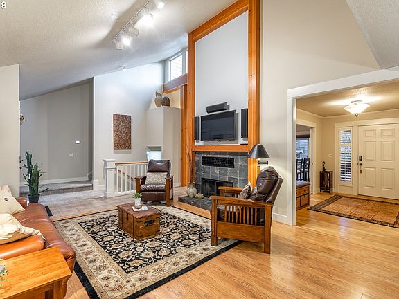 4 beds (2 masters) & 3.5 baths. NO HOA. Owner's master suite w/fireplace over 800 sq feet. Vaulted and beamed ceilings, pass-through fireplace. Full remodel in 2005 with renovations in 2018 including both lower bathrooms, newer carpet, toilets, wired for TV/video-wall mounted sound speakers incl. Bull Mountain neighborhood, low maintenance outdoor space with raised bed gardens, great flow for entertaining.