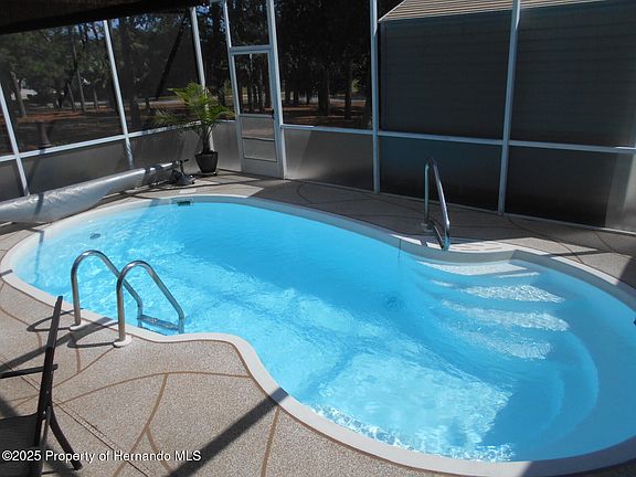 This home is located on the golf course in Brookridge golf community. It is a 3-bedroom 2-bathroom with a pool and a jacuzzi. When you walk in you are greeted with the kitchen that has been fully redone, with an island to separate the dining room and kitchen. The living room is newt to the dining area. To the right is the screen enclosure with the pool and jacuzzi. It would be great for entertaining family and friends. To the left is the 3-bedrooms and bathrooms. The master is large with a master bathroom very nice. The home has had many upgrades: All new granite counter tops, tile backsplash, all new appliances, vaulted ceilings, crown molding thru out, new laminate flooring that is 48 hrs. waterproof, new pantry, the hot tub is 2 yrs old, built in desk and shelves in one of the bedrooms, new breaker box and all new breakers, the master bathroom has been updated with doorless tile shower and granite counter tops, also the main bathroom has granite counter tops, new laundry area, the pool area all redone, the pool has been resurfaced 2 yrs ago with marine gel on the fiber glass, the pool heater is 5 yrs old, there is a new shed out back for storage, new acrylic floors in front lanai, carport, and driveway, new hurricane shutter, new washer and dryer, new reserved fans in living room and master bedroom, the a/c is 2021 and the roof is 10 yrs old with a 25yr warranty on the shingles. Motivated sellers bring all offers. Come out and enjoy the sun in 55+ community where you own your own land!