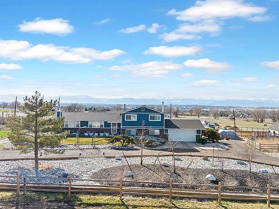 The rare opportunity to own your own ag property nestled close to town awaits! This tranquil property spans just over 2 acres, boasting panoramic views of the entire front range. Ideal for animal enthusiasts, the barn is equipped with power and water lines, ready to accommodate your beloved pets or livestock. Embrace the beauty of the meticulously landscaped yard with garden space, as well as grapevines and various fruit trees. Step inside to discover a recently updated kitchen adorned with new appliances (2020) and sleek soapstone countertops. The spacious eat-in area seamlessly flows into a stunning great room with vaulted ceilings, providing an idyllic space for gatherings and family bonding. The living quarters are conveniently situated just a few steps above the main entertaining area. Descend a short flight of stairs to uncover a sprawling bonus space, offering endless possibilities for customization. No expense was spared in enhancing both the interior and exterior of this home. Recent upgrades include fresh paint inside (2020) and out (2022), new flooring, baseboards, and trim (2020), a new A/C unit, water heater, plantation shutters, electrical panel upgrade, water booster pump replacement, and a new roof (all in 2020). Further enhancing the property are new stall doors and walls in the barn, extensive landscaping including added trees, grapes, and irrigation ($100k value done in 2020), as well as newly regraded asphalt roads forming a circular drive and leading to the barn. Additionally, new fencing throughout the property translates to a $40k savings for you. Smart features abound, including smart lighting, locks, and ceiling fans, alongside upgraded outlets and switches. Don't miss this extraordinary opportunity to embrace a lifestyle of serenity and convenience, where the joys of rural living converge with modern comforts. Lender incentive available when using preferred lender, contact listing agent for details.