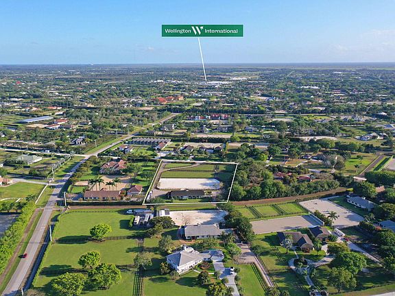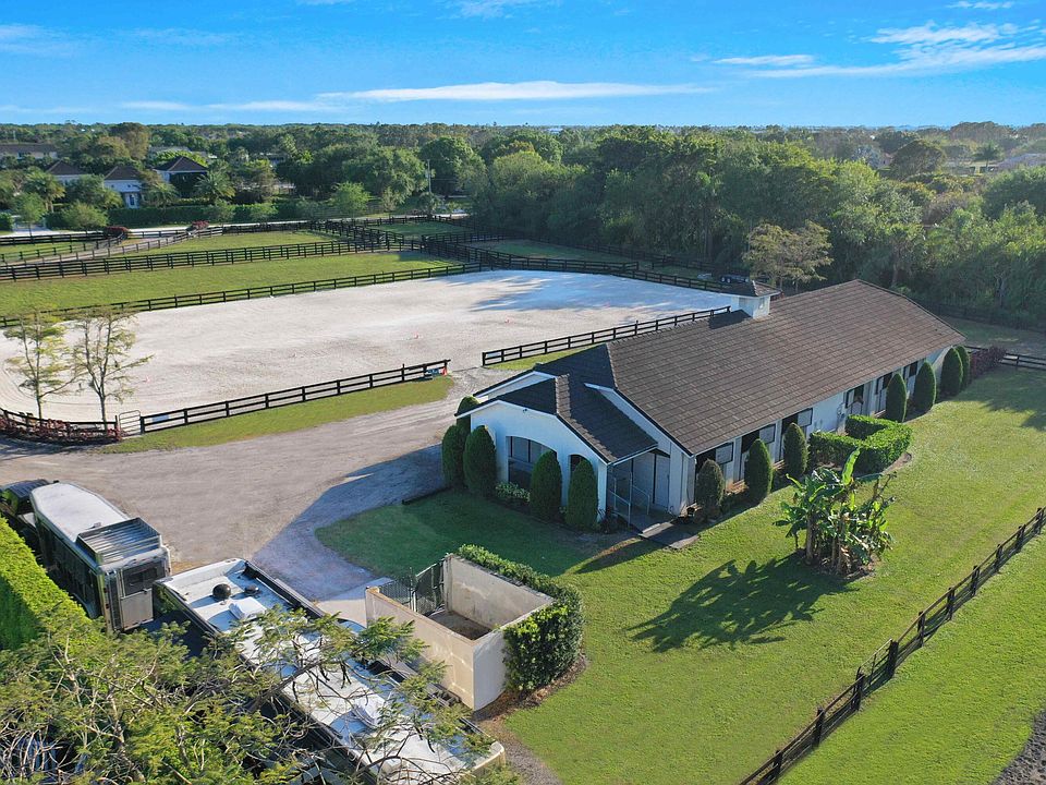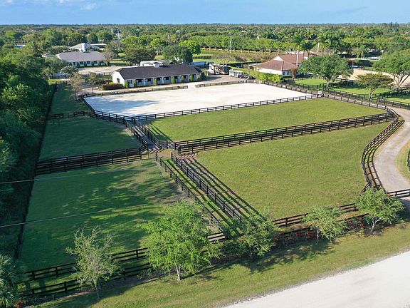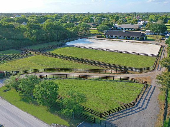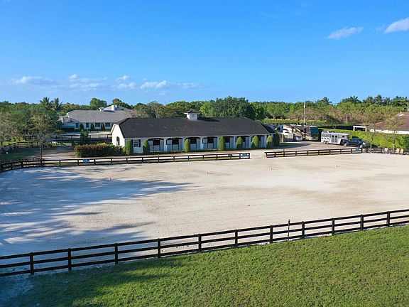Unique opportunity in Saddle Trail!( Check this property out if you are looking for an equestrian property within hacking distance, that's under 4m and without a large main house!) This private equestrian property is directly located on the maintained bridle path to the show, with a straight forward 1.7 mile hack to Wellington International. The property includes a 13-center aisle barn with mats throughout, fans and water in each stall, tack room, laundry/break room with a half bath, feed room, 2 wash racks, covered front patio with equine Treadmill hookup, 230 x 126 sand arena, 5 large grass paddocks and RV hookup. Some stalls are leased seasonally. The rental income is $130,000 for 10 of the 13 stalls for 2025 season. Offering includes only Lot 2 of Block 55 of Saddle Trail Park of Wellington and is currently part of a larger property that will be divided. Taxes displayed are based on the entire property and not just the offering.