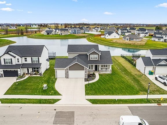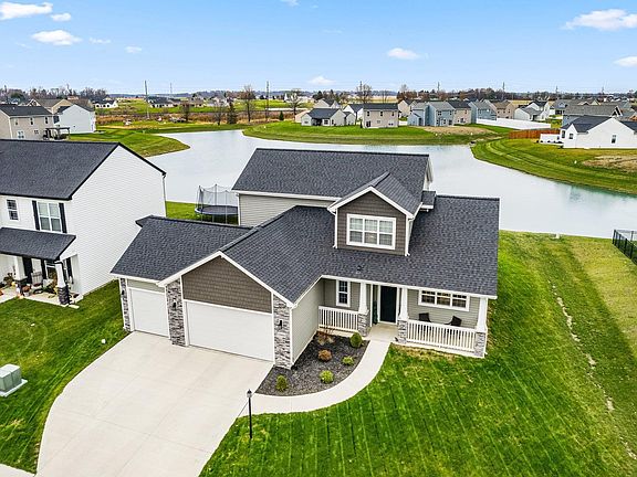 Stunning pond lot property, nestled in the heart of south west Fort Wayne, offers the perfect blend of serenity and sophistication. This gorgeous home boasts 9 foot ceilings in the first floor, sleek quartz countertops, crisp white cabinetry throughout, and top-of-the-line stainless steel appliances, including a sleek white glass panel refrigerator, tile walk-in shower, and two walk-in closets. What truly sets this property apart is its breathtaking pond lot setting, offering a beautiful view that will leave you in awe. With its picturesque surroundings and luxurious amenities, this property is a rare find. Don't miss out on this incredible opportunity to own your dream home. take a look at our virtual tour with drone footage. Sale includes security system (6 Hardwired cameras along with 4K HD DVR), Reverse osmosis water purifier, Smart home with NEW Simplx Smart Home Technology - Control panel, up to 4 door sensors, 2 installed.