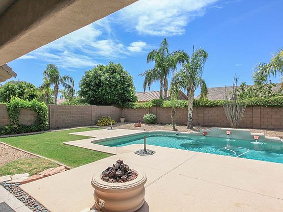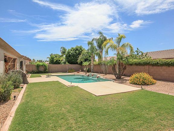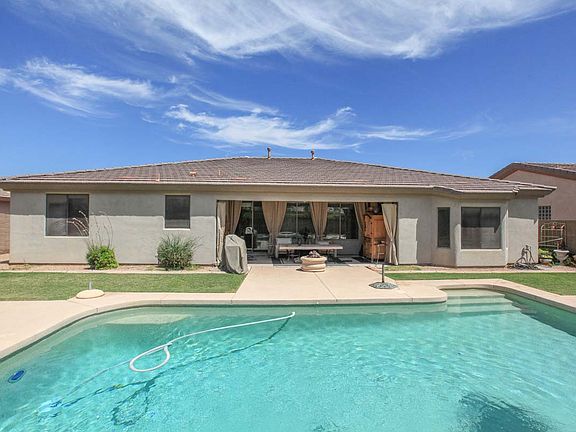 Gorgeous Palm Valley home with resort style pool! Fantastic layout features a full guest suite with casita possibilities! This popular layout includes a formal living room(could double as a game room), formal dining room, family room, breakfast room, 5 bedrooms and 3.5 bathrooms. Upgrades throughout the home include custom security gate at front entry, newly tiled floors throughout, light fixtures, and garage storage. The spacious kitchen has white cabinets, stylish hardware, upgraded granite countertops, stainless steel appliances including double oven, gas cooktop, and french door refrigerator. The backyard is an oasis featuring plenty of entertaining patio space, sparkling resort style pool, and beautiful serene flower garden at the side yard. Close to all major shopping, dining and