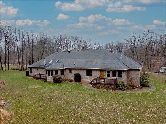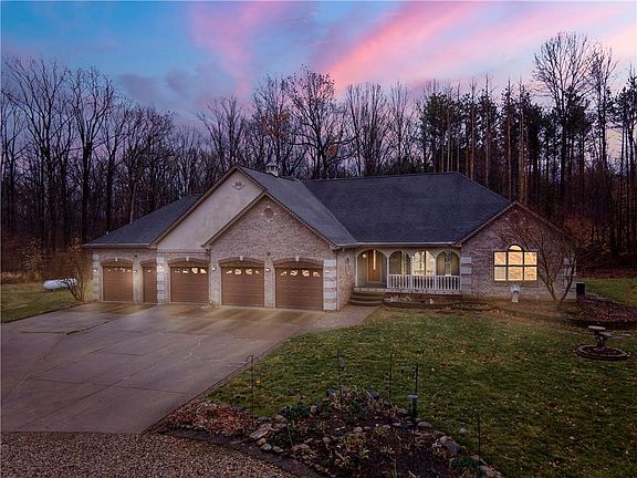 Stunning brick/stucco, 3BR 2.5BA ranch w/full finished bsmt. Enjoy breakfast while watching the resident deer & wild turkey from the Breakfast Area, 780ac of Bradford Woods Forestry is the backyard! Over 7500 daffodils, 100 iris, 7 lilacs & more have been planted. This home boasts Venetian drywall, Custom front door, tongue & groove front porch, beveled stained glass, vaulted skylights & private sunroom off main bedroom. It's a car collector's dream w/heated/cooled 5 bay garage. 2 fireplaces (1 in bsmt), library w/built-in bookcases & oak floors. Huge rec room in bsmt w/exercise area. This home features a whole house generator so you will never be w/o power! Truly a "Must See" to fully appreciate everything this home offers.