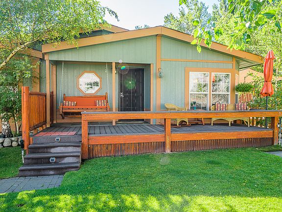 Fantastic views of Wheeler Crest, best in the 40 Acres community, from this immaculate 3 bedroom/2 bath manufactured home on a permanent foundation that borders BLM land. Super spacious living room, kitchen has been upgraded with granite and stainless appliances, hardwood flooring. 3 decks for wonderful outdoor living. Streams run through the property. Nicely landscaped with sprinklers, trees, 2 hot tubs, 2 sheds, horse corral and plenty of room for storage.