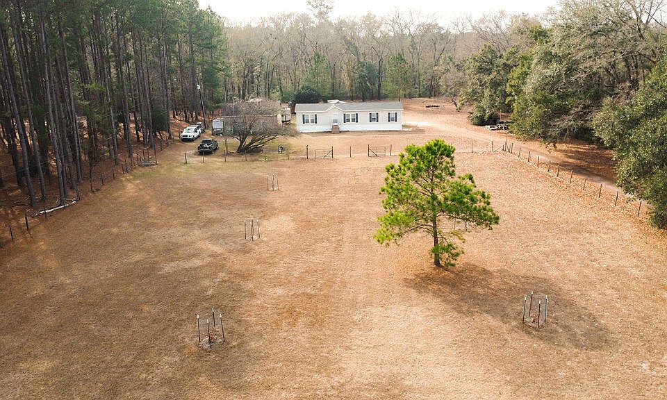 Welcome to your private country retreat on 5.9 fully usable acres with a gated entrance, beautiful oak trees, and a well-maintained driveway that leads you to the home. A peaceful pond sits near the front of the property, along with several fenced pastures previously used for livestock--ideal for horses, cattle, or other animals.The property is perfect for privacy and outside enjoyment with your natural surroundings. An RV hookup adds convenience for guests or travel enthusiasts.The newer double-wide mobile home features a spacious open floor plan with three bedrooms, two full bathrooms, and an additional flex space perfect for an office, playroom, or extra living area.Outside, the possibilities are endless--room for gardening, fishingin the pond, and raising horses or chickens. Tons of storage are available with multiple sheds and a detached car garage. This property offers the perfect blend of functionality, space, and peaceful rural living.