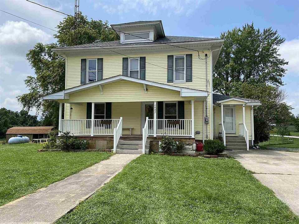 MOTIVATED SELLER OPEN TO OFFERS - Only 7 miles to Spring Mill and 8 minutes to Bedford this 3 acre hobby farm features a large farmhouse with 5bd, 3ba, original hardwood floors, master with en-suite and large walk-in closet, home office or craft room, country kitchen with nook, mud room, large laundry with pantry area, and an abundance of storage. Separate man cave with electric, insulated, and drywall. Solid wood barn with faux antique metal siding, concrete floors with drain, and electric built in 2009 it functions as dog kennel but could be used for small livestock. (Dog kennel runs do not stay) New fencing and poles in 2016. This farmhouse is the perfect homestead to get away from town but close enough to make a quick grocery run. Home Warranty. New Septic Finger System being installed.