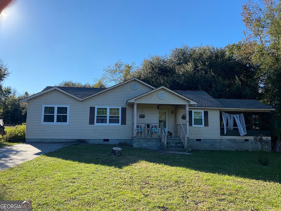 This charming 3 bedroom 1 bath home sits on just over 6 acres in Rentz. The dining room, living room, and kitchen have an open concept feel. A large covered porch just off the primary bedroom allows for a perfect place to sit an enjoy the seasons all year long. There is a fence around the entire property. A gas fireplace is ready to be connected and you can enjoy in the coming winter months.