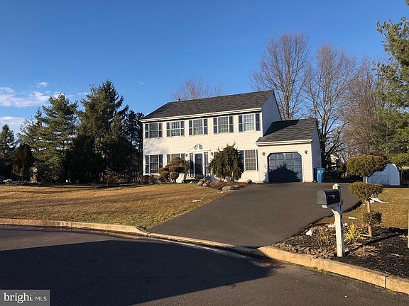 This is the home you have been waiting for! Make this beautiful and cozy home in the sought-after neighborhood of Country Hunt yours with its coveted cul-de-sac location in an award-winning school district. The lovely landscaped yard invites you into this 4 bedroom, 2.5 bath gem with a newly renovated kitchen, bathrooms, and fresh paint. The marble foyer invites you in, and the marble flooring continues in a luxe black into the formal dining room. The kitchen, with its new maple cabinets with Blue Pearl granite countertops and custom-designed island with raised bar, overlooks the cathedral-ceiling breakfast room. The family room also has a black marble fireplace with a lovely view of the pavers patio with a pond with soothing waterfall and deliciously sweet fruit-bearing Asian pear trees. Upstairs, you will find a newly renovated full bath designed with the hard-to-find Lhasa quartz and marble slabs. There are 3 spacious bedrooms and a master bedroom with a large sitting area and walk-in closet. The master bath has a jacuzzi and new granite countertops as well. But, wait, there is more! The basement is finished with a storage room and an area for your in-home gym or entertainment area. There is also an extended driveway and shed. Located near the PA turnpike, Septa train, Doylestown, New Hope and a little over an hour from North Jersey/New York City, this is the one! Sellers are offering a one-year home warranty from American Home Shield, SHIELDCOMPLETE plan.