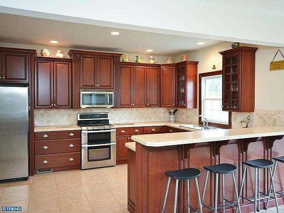 Almost new- Grand 5 bedroom colonial on a tree lined street in popular Haverford Township. Open floor plan with plenty of room to entertain. Two story foyerand family room. Living and dining areas with Brazilian cherry floors. Spacious kitchen with lots of cherry wood cabinetry, porcelain tiled floor,tumbled marble back splash, huge breakfast bar,spacious pantry and desk area-Open to great room with lots of natural light, pillars and french doors that lead to deck, patios and pool. You'll love the convenience of the attached garage which leads to the mudroom. Who doesn't want a 1st floor laundry room and powder room! The master suite has a vaulted ceiling and a gorgeous designer bath with granite topped double bowl vanity, over sized marble and glass shower,jetted tub and separate water closet. Three more good sized bedrooms,tiled hall bath and office area make up the 2nd floor. The third floor has the 5th bedroom and tons of storage space. Enormous basement was finished into a 2nd family room with a fireplace. Plenty of room for full sized pool table! Another set of french doors lead to the backyard which is an Oasis-it'll feel like you're on vacation! Beautiful landscaping/paver patios and walkways. Two zoned energy efficient heat and central air. "Silent floors". Conveniently located: walk to shopping center, new YMCA, restaurants, parks, school and more. Quick access to all major roads-#3, 476, 95 and the airport. Center city is a 20 minute commute. This is a special house that you'll be proud to call home.