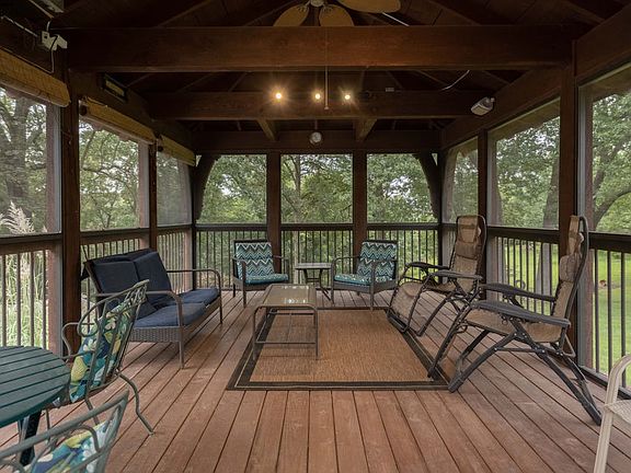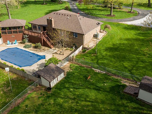Park like setting, beautiful all brick walkout basement home sitting on just under 3 acres with amazing views of nature and wildlife. Located just 15 minutes from Springfield easy highway access to 65 and James River. Features covered screened in deck that overlooks the pool and woods to enjoy the fabulous sunrise and sunsets as the home is nestled by trees at the end of dead end Rd. Home has 2 additional large outbuildings with concrete floors and electricity. This walkout ranch features 4 bedrooms, 3 full baths, great room with wet bar and pool table that stays with the property. New architectural shingled roof in 2019. Call for your showing today.