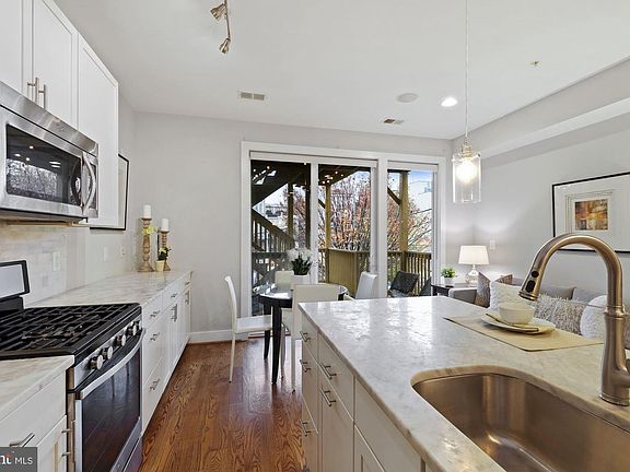 OPEN SUN, Dec. 20 1:00 - 3:00. All COVID safety protocols observed - Masks, social distancing, one group at a time in unit. Price improvement! Lovely, pristine, and freshly painted Unit #3 is a 2BR/2BA flat in five unit boutique building, featuring an impressive kitchen, spacious outdoor deck, two deeded parking spaces and much more. Highlights of this contemporary condominium home are a white marble kitchen with expansive peninsula, stainless appliances, gas cooking and sliding glass door opening onto the large outdoor deck (with string lighting) Accenting the open concept kitchen/living area are pendant, track and recessed lighting fixtures. Expansive marble counters and generous cabinet space complete the package, an ideal kitchen for the chef of the house! The spacious and sun splashed master bedroom features an en-suite bathroom with marble counters, dual sinks, soaking tub and a separate water closet. The second bedroom is ideal for a home office, teleworking space or for guests and features a large closet. The hall bathroom sports a walk-in shower and marble counters. The full sized stacked washer and dryer, Elfa shelving system in all closets, and gorgeous hardwood floors throughout the entire apartment are additional bonuses. Owners have rented one of the two parking spaces to other residents in the building since 2013. The building installed a new roof in 2019; the well-managed condo association has good reserves and low, stable dues. Located steps to Metro and the shopping and entertainment corridors of Columbia Heights (14th Street ) and Adams Morgan (Columbia Rd & 18th Street) this coveted location should be your next urban home!