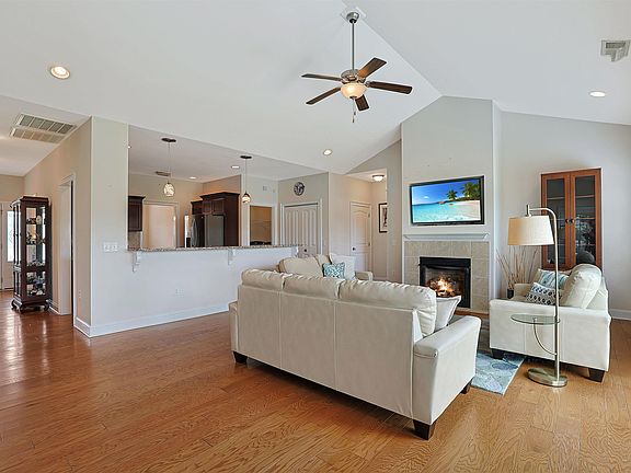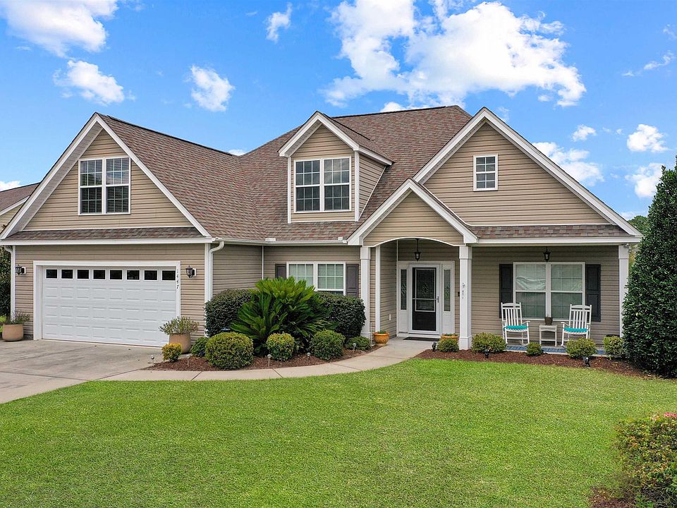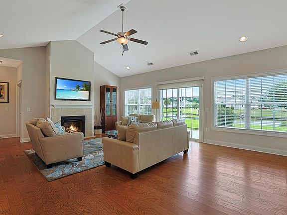 Introducing this exquisite 3 bedroom 2 bath home located in the popular Hillsborough community. As you enter this captivating home you take notice of the elegance of this bright open floor plan that features smooth vaulted flat ceilings, hardwood & tile flooring, a graceful formal dining room, a comfortable living room with a cozy gas log fire place that showcases access to the enchanting screened-in patio along with a sliding glass door that opens up to the delightful uncovered back patio with both over looking the tranquil lake. Your modern kitchen is equipped with a stainless steel appliances package, granite counter tops, a breakfast bar, cabinets with crown moulding, along with an ideal kitchen pantry. The comfortable main level primary suite offers a single step tray ceiling with a fan, memorable lake views, private access to the primary bath hosting vanity with dual sinks, a comfort station, spacious walk-in, and a deluxe step-in shower. This delightful home is completed with two additional bedrooms, a full guest bath, a bonus room over the garage (FROG), a laundry room, and a two car attached garage. Hillsborough is a charming community with desirable amenities that feature an outdoor pool, pickleball/basketball court, playground, grilling area, cornhole toss, bocce ball pit, along with an amenity center. This home affords you easy access to the beach and golfing along with all of the other activities and happenings in Myrtle Beach & Conway including fun eateries, award winning off-Broadway shows, public fishing piers, Conway’s historic riverwalk, and intriguing shopping adventures along the Grand Strand. Conveniently located to your everyday needs, including grocery stores, banks, post offices, medical centers, doctors’ offices, and pharmacies. Check out our state of the art 3-D VirtualTour.