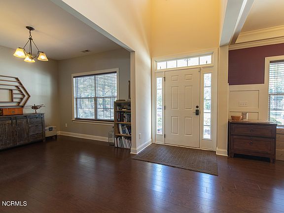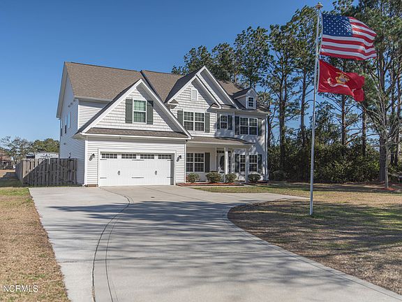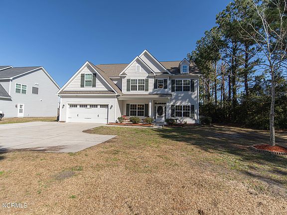 This immaculate home in Swansboro has everything you are looking for and then some! With over 3400 sq ft, and over an acre of land, there is plenty of room for everyone to live and play! This home is on a 4 bedroom septic, but has potential for 6 bedrooms! Inviting 2 story foyer, beautiful dining room with wainscotting and coffered ceiling. Study which can be used as an office, play room, living room. Inviting 19x16 family room with gas fireplace which opens to the kitchen which boasts granite countertops, tile backsplash, stainless steel appliances and a generous size pantry. Breakfast nook and large island for plenty of seating options. This home even has a butlers pantry! Mud room located just off the kitchen, with storage bench and cabinets, and large laundry room located downstairs. This home also has a custom laundry chute! No more lugging your laundry down the stairs! Flex room with closet also located downstairs which can be used as an office or bedroom, and has access to the full bath downstairs. Upstairs, you'll find 3 additional bedrooms, 2 full bathrooms, a 17x16 rec room (with closet) and an owners suite you'll need to see in person to appreciate. The walk-in closet is HUGE! Trey ceiling, master bath with his and hers sinks, garden tub and separate shower. This home sits on over an acre of land, and the backyard was built for entertaining. Brick patio, pergola, custom outdoor kitchen island, custom fire table, 12x16 shed, fenced in garden, Hexagonal fire pit with custom swings. 6 foot wood privacy fence, and oh yeah, the Hot Tub stays! All of this along with a 2 car garage with built in storage and a workbench, and additional parking pad for all of your visitors! The home is located on an end lot, which ajoins to a line of pine trees for added privacy. Less than a half mile to Hammocks Beach State Park, which offers a boat ramp, kayak launch, and miles of walking trails, or hop on the ferry to Bear Island and spend the day at the Beach! Convenient location, less than 5 minutes to downtown Swansboro and Walmart, and an easy drive to Camp Lejeune and New River Air Station. No city taxes and NO HOA! Don't miss out on this one. Call 910-388-8193 for more information or to schedule an appointment today.