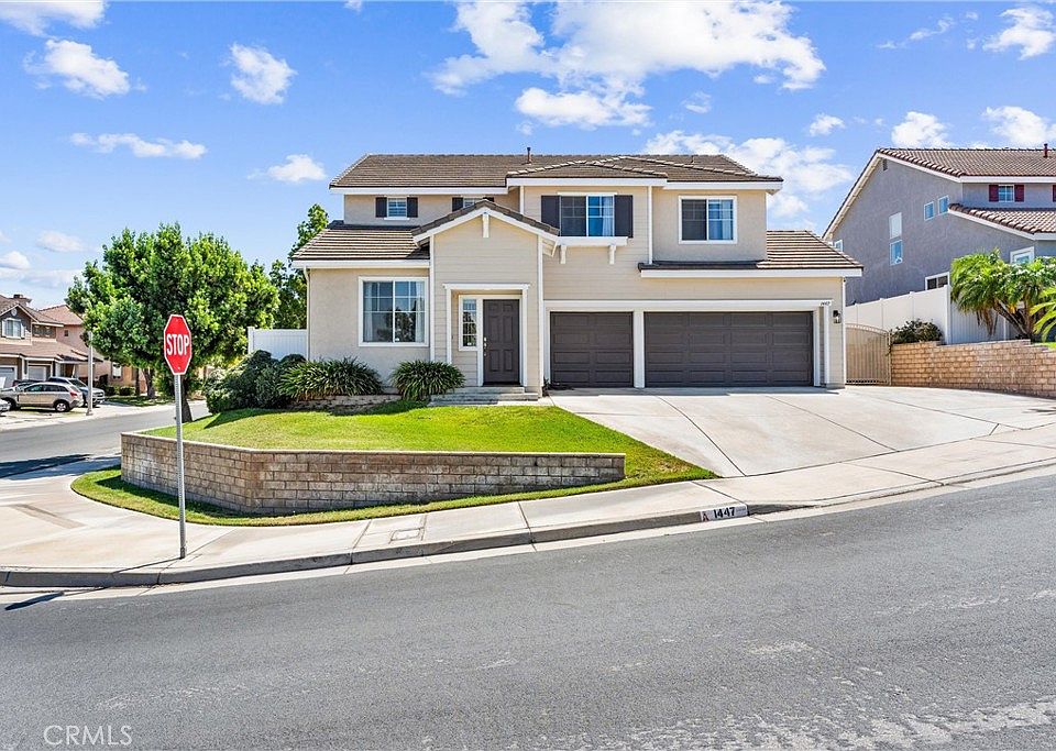 Welcome to your new home at 1447 Lochaber Ct! This 3 bed/2.5 bath + loft sits on the corner of a small cul-de-sac and is just down the street from Sycamore Highlands Park - known for its hiking, biking, picnicking, and breathtaking sunsets. Once inside the home, you'll be greeted with tons of space, lots of natural light, and a place where memories will be made. The family room right off of the entryway can be used in multiple ways, such as a lively game room, a more formal living/dining room, or an epic hangout spot for family/friend gatherings. As you pass the half bath, you'll enter into the kitchen which offers a walk-in pantry and a kitchen island that's perfect for hosting pizza night or a holiday meal. The eating area can easily sit six comfortably, and the living room provides a cozy spot to relax on the couch. Upstairs, you'll find the primary bedroom with an ensuite, two guest bedrooms, another full bathroom, a separate laundry room, and the loft that makes for a great work-from-home office. Lastly, the backyard offers both a covered patio for shade and an uncovered patio area for sun. During those cooler nights, you can sit back and relax in the above-ground, heated spa. Additional features include a new, vinyl privacy fence, a freshly-painted exterior, quartz countertops in the full bathrooms, RV parking, and close proximity to the freeway, UC Riverside, shopping, and more!