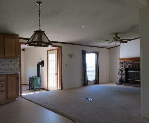 The Kitchen is open to Dining Area & Family room. Light maple cabinets, all appliances remain. 19 X 12 Family room has fireplace & ceiling fan. There's a wide walk thru to the recessed Bonus (TV) Room 20 X 13, has a vented gas stove on a thermostat, ceiling fan, surround sound speakers, rear entry door. Utility area has stackable Washer & Dryer, gas water heater & furnace (high efficiency furnace10 yrs old & "Bryant" 2-stage Heat Pump only 2 yrs old (heats & cools...saves tons on utility bills, gas furnace doesn't kick on until temp drops to 35 degrees, the heat pump takes care of it until then.) 17 X 15 Living room with bow window & vaulted ceiling, ceiling fan. Master Bedroom has walk-in closet, full bath, (closet has water softener "owned"). There's a 4th bedroom off the utility also with ceiling fan and access to the attic. 2-Car attached garage has openers, shelving, overhead propane heater & pull down stairs to attic storage. 6" Well, insulated pump house; septic in the middle of backyard. The 2 propane tanks are owned (makes utility prices lower to do summer fills). The average electric cost over 12 months $116.83. Gas $65.65. Wide gravel drive, nice landscaping, roof shingles 3 years ago and siding 10 years. Crawl entrance is in the 4th Bedroom closet (off the utility area).