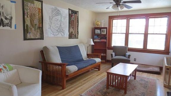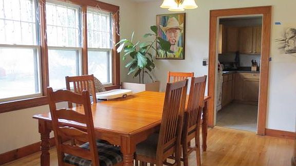 Lovely post-war Tudor style 1.5 story home in the Town of Ithaca. Beautifully polished hardwood floors, traditional detailing and comfortable entertainment area. High quality wood stove insert and Whitmore perimeter fencing installed by current owners.2 stories of finished living space with great light and nicely proportioned spaces. Enclosed porch off kitchen.Perimeter fencing makes for safe play for kids and pets. Lowest level is unfinished and high, but provides excellent storage, garage, and workshop. Low utilities, all municipal services, Belle Sherman Elementary.