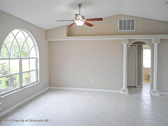 Move-in ready, three bedroom, two bath home located in Spring Hill. This home features an eat in kitchen with tile flooring, pantry and breakfast bar; a great room with tile flooring, vaulted ceilings, plant shelves, and french doors that open up the lanai; the primary bedroom suite bath has a garden tub and walk-in shower; bedrooms 2 & 3 are generously sized; there is an inside laundry room and a fenced in back yard. The roof and HVAC system are 6 years old.