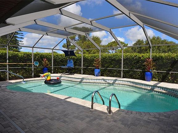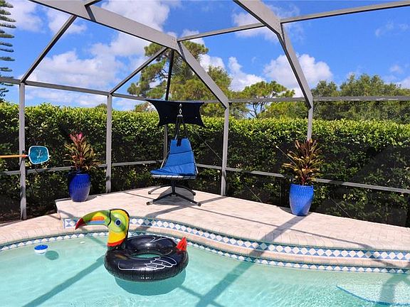 This home is on a huge lot 0.43 acres, and is on a cul-de-sac. Features include a gorgeous in ground 28 x 15 kidney shaped heated pool that is very private with large hedge surrounding the pool area. Large lanai measuring 32.5 feet x 10 under roof, with a pass through window from kitchen. Mature landscaping. Fresh paint on inside and outside, new carpet and laminate. Lavish master bathroom with 2 walk in closets and massaging shower with sit down bench. Home has a built-in whole house 17kw generator with in ground 250 gallon propane tank that automatically turns on when the power fails. Wood style beamed cathedral ceilings in main living areas. Granite countertops in the kitchen with pass through window that overlooks the pool. 2nd bedroom has a closet with a murphy bed and there are some cabinets on the walls with shelves. Garage has areas for your tools to hang on the pegboard, and floor is epoxy paint coated. Entire house has hurricane shutter protection. The pool area has accordion shutters. There is an inside utility/laundry room with a toilet and a sink and an exit door to the garage that has a doggie door too. Located in Deep Creek Section 23. Remote Wi-Fi programmable thermostat included, and ring doorbell.