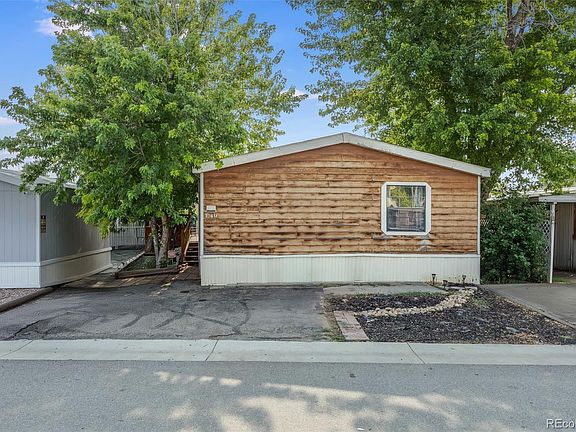 Welcome to this beautiful 3-bedroom, 2-bathroom home, featuring a spacious open floor plan with ample natural light. The charming dining room boasts exquisite built-in features, while the living and family rooms merge to create a perfect space for entertaining. Enjoy the well-sized bedrooms and the large primary suite, complete with a walk-in closet and a private bathroom with dual sinks and a large soaking tub. Take advantage of Colorado's year-round weather on your oversized deck and in the yard, ideal for a garden or play area. This home offers three off-street parking spaces and is part of a community with a clubhouse, pool, and playground. Conveniently located about 5 minutes from the Colfax Light Rail Station and near Stanley Marketplace, the Town Center of Aurora shops, local parks, and recreation areas, with easy access to Downtown Denver and Denver International Airport. Make this your dream home today! This home is being sold as-is. **Buyer must be approved by the Manufactured Home Park. Please contact 303-343-1414 for more information.**