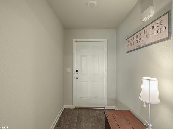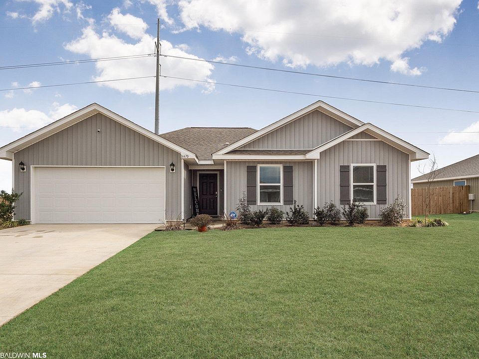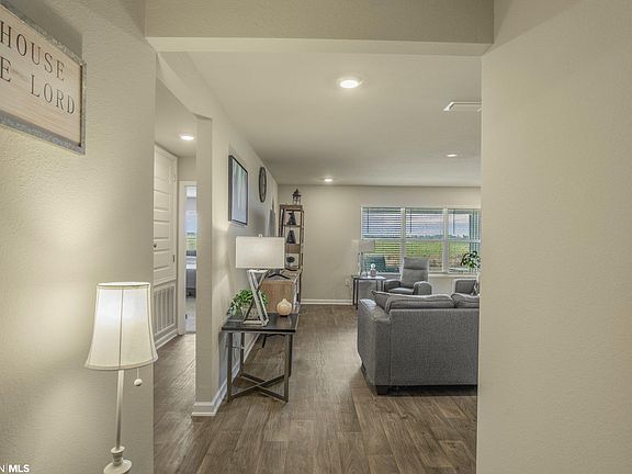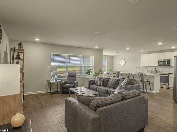 This 3 bedroom 2 bathroom Magnolia Shores "Alston" home in Foley is better than new! Open floor plan, split bedroom plan. Gold fortified, built in 2021. Vinyl flooring throughout living areas with carpet in bedrooms. Blinds on windows. LED lighting. Kitchen has stainless appliances to include refrigerator as well as an island, garbage disposal, electric range and more! Large primary suite with 5 foot shower, soaking tub, double vanities and extra large walk-in closet. Laundry room comes with washer and dryer. Double car garage. Built with Smart Home capabilities. All information deemed reliable and accurate.