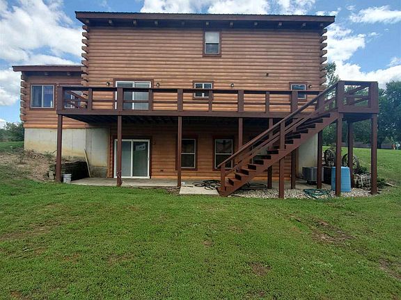 The thought of relaxation is now a dream come true with this beautifully designed 2 Bedroom/2 Bathroom cabin, that sits on 4+ acres in Jasonville. Conveniently located near Shakamak State Park, and Highway 48, imagine relaxing and rocking in your rocker, while sipping your morning coffee on the front porch, or enjoying those family & friend get gatherings on the large back porch that features it's own staircase. Inside is a an open floor plan! Plenty of glass lets in lots of natural light into the Sun Room. Custom stoned fireplace, kitchen with beautiful cabinets and hardwood floors are featured throughout the home. Home has Central HVAC, and spacious master bedroom with a master bath that features a soaking tub and shower on the main level. Upstairs features a private loft area, and the 2nd bedroom with a large closet. When your imagination travels downstairs, you have endless possibilities and opportunities!! Large open basement that could eventually be additional bedrooms/baths, a large game room, downstairs kitchenette, and the list goes on and on. With so many possibilities this space will be great for entertaining!! It does feature an outside entrance already though!! Also - Perma-drain is installed around the outside of the basement. It's the little things that count in this home as it features a R34 Rating on the Roof with 12 Inch Styrofoam panels on the metal roof. The outside features an abundance of various fruit trees such as pears, apples, and cherries. It might be the little things that count - but there's no way you would describe the pole barn as little. This concrete floored cart barn would make a great workshop or a mechanic's ideal building!! New more space? Well you're in luck - additional storage can be found in another two car garage that sits east of the pole barn. Your dream log cabin home awaits!!