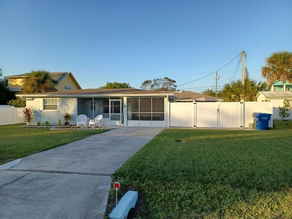 HERE IT IS! This could be the right one, the one you've been waiting on! Very charming cozy house that is ready for you to Live in, Short-Term rent or keep as a wonderful vacation getaway by the beach. Very sought-after neighborhood less than one mile to Indian Rocks Beach, LOCATION- This one has it! You can't build or manufacture location, it has to come available. SO MANY POSITIVES to this small but mighty home. You will not find another Single-Family, MOVE IN ready, block house closer to the Gulf or Intercoastal for this price!!! * EASY mile bike ride or walk to the BEACH and many beach restaurants. * Less than a mile to Splash Harbor waterpark. * Half mile or less to restaurants, grocery, shopping and more. * Less than half a mile to TWO fantastic Pinellas County Parks. Both with boardwalks on the Intercoastal. One with a Bird of Prey sanctuary & huge Turtle Pond, the other has a Public Fishing area. Both have playgrounds. * Just a VERY SHORT DISTANCE to the Largo Intercoastal Marina. Store your boat or join the boat club and always be 200 yards from getting on a boat. Like having your own boat valet, call 15 minutes ahead. EASY! Home is very clean and move in ready. Updated main bathroom, brand new 2nd bathroom. Granite kitchen countertops, tankless hot water heater, fresh paint in/out, fenced patio and backyard, new gutters and a storage shed. For where it sits, feels like a private lot- with having no neighbors looking in from across the street. House presents 3 great Living Areas for that Florida lifestyle- Inside Living Room, fully Screened In Living area and Outdoor Patio Living area. HUGE paver patio has a 10' double gate, store your boat, RV or add a swim spa, plenty of private space! Freshly sodded back yard. Sit on the front porch and watch the beautiful sunset colors in this peaceful neighborhood. Hip roof is a big plus- SAVE $$$ on your homeowner's insurance. This home is in Flood Zone X, NO FLOOD INSURANCE required!! NO HOA, NO Deed Restrictions. This is a very hard to find combination of LOCATION, access to AMENTIES & PRICE. Home is zoned for Short-term rentals!! Great for a couple to live in, Snowbirds to visit every year or just the right place for you.
