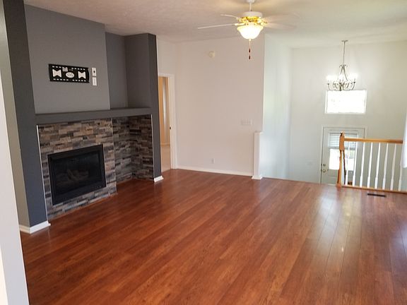 - Living Room Desc: Balcony/Deck, Fireplace, Ceiling Fans, Window Covering, Laminate Flooring, 9'+ Ceiling