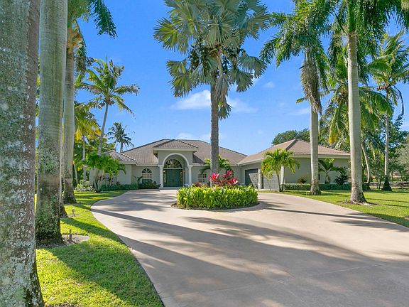 This absolutely stunning custom estate is located in the equestrian neighborhood of Paddock Park 2 of Wellington. The 2.32-acre property is hacking distance to the show and ideally situated directly on a groomed bridle path. It is efficiently designed with plenty of space to add a barn and arena. Proposed barn plan has been completed and the site plan has already been approved by the city. The sprawling residence features 6 bedrooms, 4 and a half bathrooms, 4-car garage and an entertainer's dream backyard with an expansive patio and pool with a rock waterfall feature. The stately interior includes a light and bright design with volume tray ceilings and custom molding, gorgeous marble and wood floors, and a multitude of picture windows with fantastic views. There are formal living and dining rooms, a large bay window breakfast area, an expansive family room with a built-in flagstone wet bar, and much more!