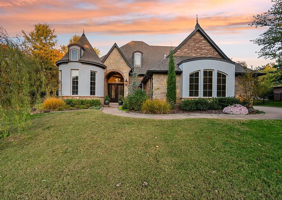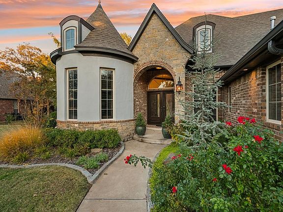 OPEN HOUSE SUNDAY 11/23 2-4 PM. Nestled on a manicured half-acre lot within the exclusive, tree-lined streets of coveted Bella Terra, this elegant French-inspired estate blends refined architectural detail with modern luxury. Set in one of Northeast Edmond’s most sought after communities, this residence was thoughtfully designed for both grand entertaining and effortless everyday living. Step inside to discover a beautifully curated interior featuring 4 spacious bedrooms in a private split plan, a sophisticated home office, and a custom-designed theatre upstairs. The gourmet kitchen boasts rich knotty alder stained cabinetry, an oversized island ideal for gathering, and a generous walk-in pantry, all crafted with impeccable attention to detail. The expansive enclosed outdoor living and dining area extends your entertaining space year-round, accented by a cozy wood-burning fireplace and framed by serene backyard views. Upstairs, the state-of-the-art theatre includes a diner booth, a fully equipped kitchenette with refrigerator, dishwasher, and icemaker, and comes complete with theatre seating and projector. The executive office exudes elegance with a curved wall of windows and accent-lit ceiling beams, while the luxurious primary suite offers a private retreat with a spa-style bath and a spacious closet with built-in vanity connected conveniently to the laundry. Outdoors, the backyard offers an additional venue for leisure and entertainment with a tiled patio and pergola. Additional features include a three-car garage with deep bays for larger vehicles, a storm shelter, and a spacious mudroom with custom storage. Residents of Bella Terra enjoy an elevated lifestyle surrounded by resort-style amenities: a sparkling community pool with cabana, playground, basketball court, and an active homeowners association. Enjoy award-winning Edmond schools while benefiting from lower Logan County taxes.