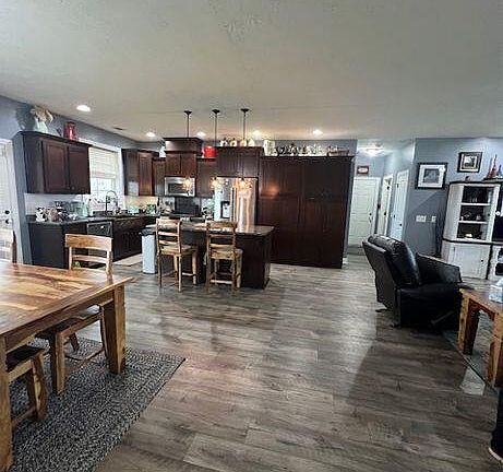 Amazing Lifestyle on over 57 Acres! This Custom-built Farmhouse/Ranch has it all! Rocking Chair Front Proch, Big Open Floor Plan, New Engineered Flooring throughout! Great Room, Kitchen with Island, Gas Range, Custom Copper Farmhouse Sink, Granite Countertops, Beautiful Cabinetry/Pantries, Dining, 2.5 Car Garage/Workshop, Barn, Corral, 2 Wells, 2 Bee Hives, Fenced! Fully Stocked!