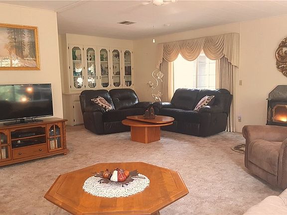 WOW!! Over 2000 sq.ft. of living space including home & enclosed porch, new roof on house & garage in 2015, newer vinyl dual pane windows, newer flooring inside, landscaped yard with watering system, lots of concrete parking in driveway and concrete walk-ways, open front deck, covered front & back porches, screened in porch, 20 x 34 garage plus several storage/workshop spaces, covered RV parking with full hook-ups, fully fenced & cross-fenced yard with gated driveway access! This home offers a spacious living room with lots of light from the full wall of windows and a cozy pellet stove for extra warmth, built-in display hutch and then opens to a large kitchen with dual ovens, pantry space, lots of cabinets and an attractive breakfast counter that opens to the dining room and family room. The sliding glass door opens an enclosed 10 x 14 screen porch. Master bedroom has ample closet & built in dresser space and a private bath with a walk-in shower and vanity area. The guest room also has mirrored closet doors and its own private access to the guest bath with a full tub/shower and access on to the hall way with extra storage closets and access to a 20x10 back bonus room with desk & storage cabinets plus the laundry room and door to the covered back deck & walkway to the garage & RV parking area. Sitting at the end of a quiet cul-de-sac and very private setting....this home has so much to offer you have to see it to appreciate it! Don't wait....it won't last long!