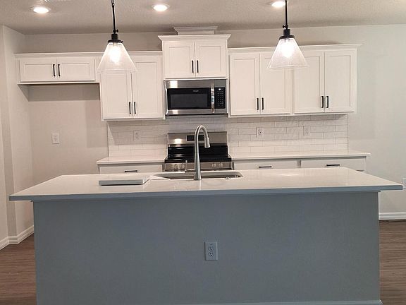 Large islandOpen-concept floor-planWell-appointed kitchenLinen and wood cabinetsWindow blindsPrimary suiteStainless-steel appliance package