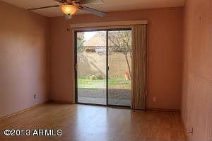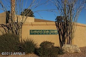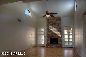 Beautiful townhome in desirable Scottsdale location! This home features warm laminate wood flooring in living areas and bedrooms, vaulted ceilings accented with windows and an exposed beam, and beautiful red brick fireplace in the living room. The master bedroom features a large walk in closet and both bedrooms have access to the back patio. The HOA maintains the lush front yard and two community pools! Pride of ownership you will not find in a REO or short sale! Come see this one today!