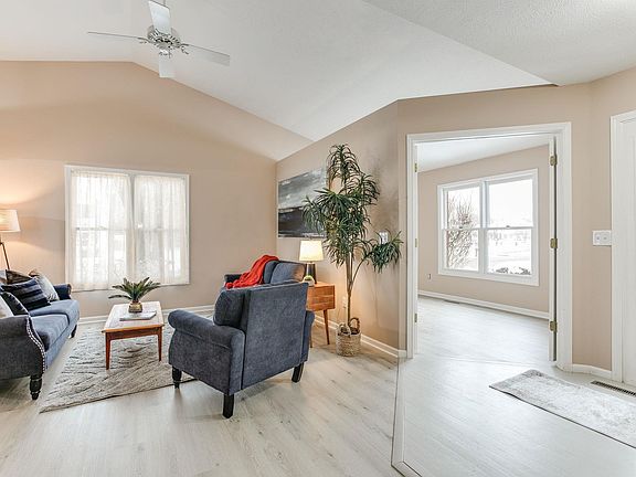 - Cathedral Ceiling(s), Walk-In Closet(s), Laminate Counters, Eat-in Kitchen, Soaking Tub, Open Floorplan, Double Vanity, Tub and Separate Shower, Tub/Shower Combination, Formal Dining Room