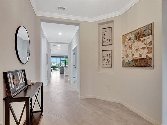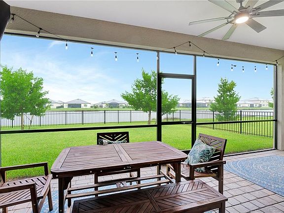 LAKEFRONT NEWER HOME (2021) WITH LARGE FENCED YARD! Portico is a newer, gated community with resort-like amenities: Pool, Pickleball, Playground, Basketball, Fabulous Fitness Center, Grill Area & activities! 3 bedrooms, Office/Den with French doors, 3 FULL baths (2 suites). Marsala floor plan still looks new when you step inside the open floor plan where everything is white & modern. Neutral decor, tile flooring (no carpet), crown molding & optional furniture package at add'l cost. Great Room features volume ceilings & back wall of glass sliding doors leading to the screened in & covered lanai to enjoy the water views. White kitchen with great prep counter & extra storage, granite island w/seating, walk-in pantry. Spacious Owner’s Suite w/2 walk-in closets, spacious bath has dual sinks, large walk-in shower w/seamless glass and sep tub. Laundry room w/sink. No flood insurance req. HOA offers plenty of green space, sidewalks & low fees. Amenities include clubhouse, community pool, fitness, yoga/exercise room, tennis, pickleball, basketball, play area. Pets, Fences & sidewalks. Easy location to RSW Airport, I-75, shopping, school, entertainment/river district & more!