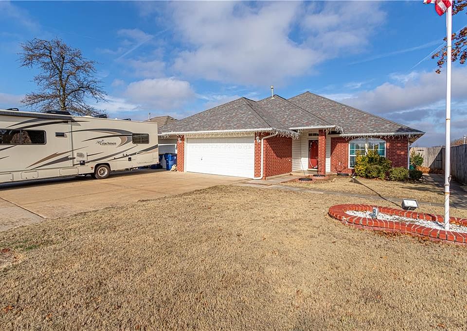 Beautiful home in Choctaw Schools that backs up to Choctaw Creek Park. Minutes from Choctaw High School & Middle School, Walmart, Choctaw Creek Golf Course, NE 23rd, and I40/ I240. Large living room has a brick fireplace and floods with natural light. Large bonus space near the front door can be used as a formal dining, office, bedroom, or 2nd living space. Kitchen overlooks the living room and has a large pantry, island, dining space, gas range, and plenty of cabinetry. Master is very large with has french doors leading to a bonus space off the master. Bonus space has an exterior exit and can be used as an office or lounge area. Master bath has dual vanity sink, large jetted tub, walk-in shower and a walk-through closet. 2nd and 3rd bedrooms are both very large with plenty of closet space. Large sunroom at the back of the house is the perfect place to relax. 3 car garage and plenty of parking space in the drive. Storage shed and storm shelter in the back yard.